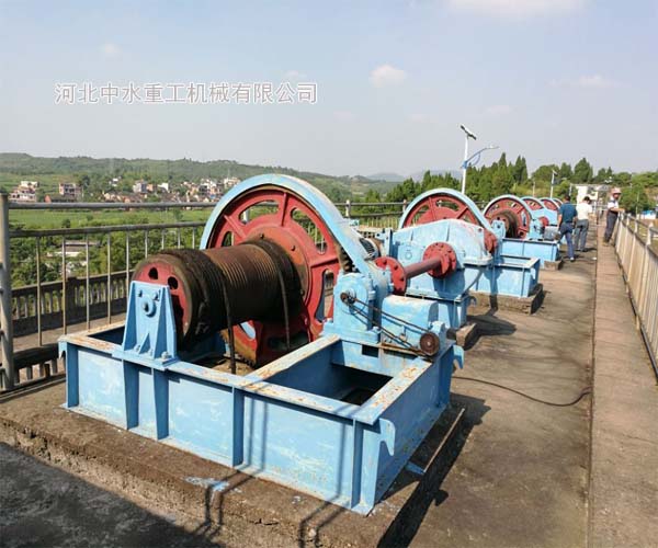 卷揚式啟閉機運行前的檢查內容應包括:(1)鎖定裝置應退出,啟閉機控制柜應掛上標示牌; (2)開度指示器、上下限位開關及超載限制器應處于良好狀態;(3)各轉動部分、開式齒輪等應無卡阻障礙物,防護罩應完好,并與轉動部位無擦刮現象;制動器是否靈活可靠;(4)鋼絲繩是否有銹蝕、斷絲、繩端固定裝置是否牢固;(5)控制柜內的電氣設備是否完好,接線有無松動;各接觸器、繼電器等是否接合良好。卷揚啟閉機比較常見,多…